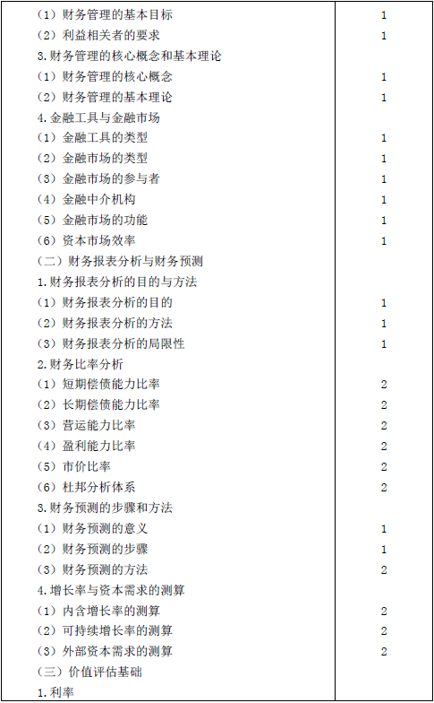 1. 财务管理基础,包括财务管理基本原理、财务报表分析与财务预测和价值评估基础;