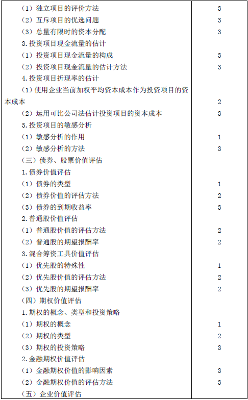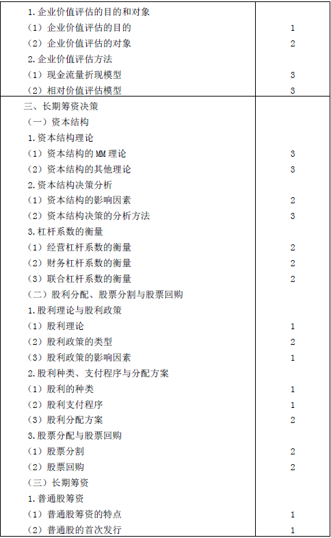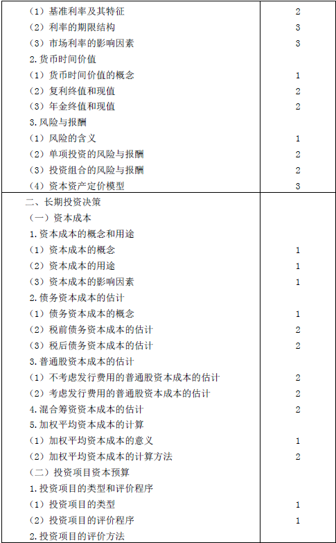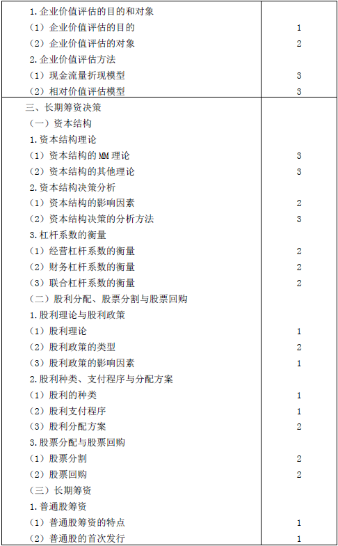 2. 长期投资决策,包括资本成本、投资项目资本预算、债券股票价值评估、期权价值评估和企业价值评估;