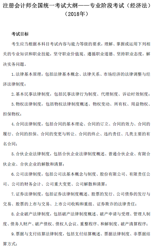 更多2018年注会考试《经济法》大纲内容请下载附件查看↓