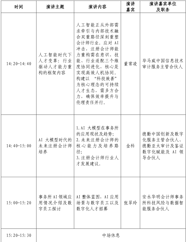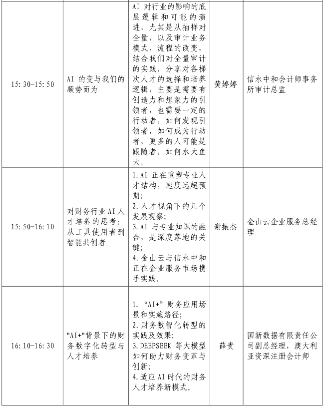当前,人工智能(AI)技术正以前所未有的速度与深度重塑全球经济格局和社会运行方式。作为市场经济“看门人”和经济信息鉴证者的注册会计师行业,身处于这场变革的前沿地带。从自动化审计流程、智能数据分析到风险预测模型的应用,AI技术不仅极大地提高了审计效率与质量,也对从业人员的专业技能、知识结构及职业发展路径提出了新的挑战与要求。培育和重塑符合AI时代发展需求的核心素养与职业能力,已成为注册会计师行业实现高质量发展的关键命题。在此背景下,北京注册会计师协会人才工作委员会拟举办“数智赋能·人才重塑”——人工智能时代下注册会计师行业人才变革分享会。现将有关事项通知如下: