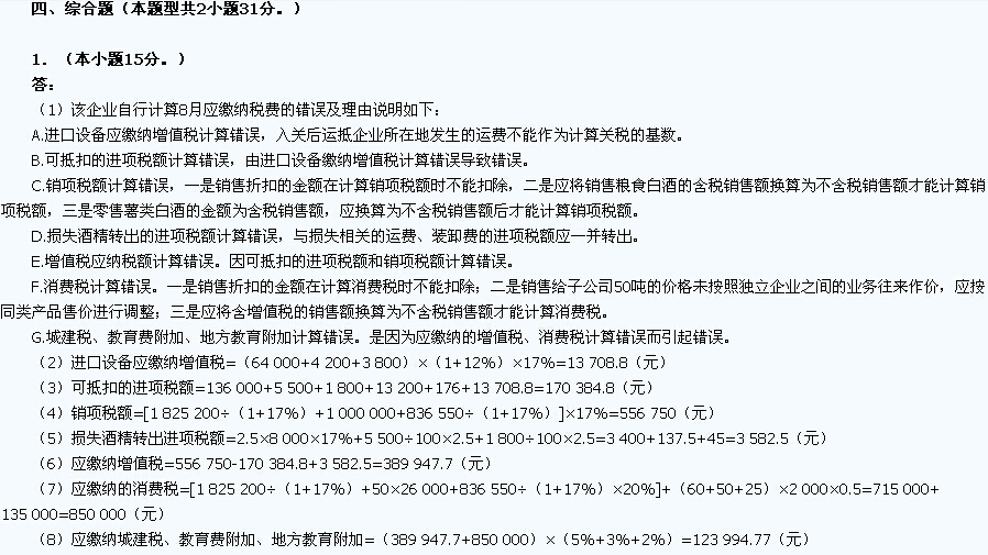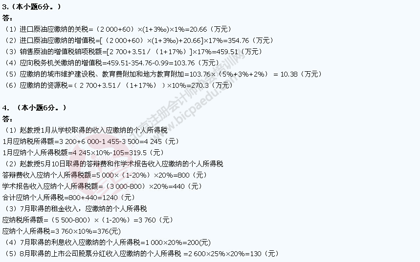2014注册会计师《税法》考试真题及答案(A卷)