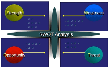 SWOT分析是一种综合考虑企业内部条件和外部环境的各种因素,进行系统评价,从而选择最佳经营战略的方法。这里,S是指企业内部的优势(strengths),W是指企业内部的劣势(Weakness),O是指企业外部环境的机会(Opportunities),T是指企业外部环境的威胁(Threats)。