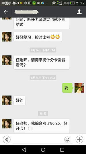 考前咨询老师“平衡计分卡需要看吗”,任俊正老师回复“要”,学员2015注会综合成绩86.25。