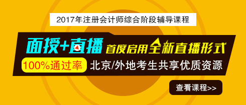 谁说外地考生不在北京是种痛?有了面授同步直播课程,你还在犹豫什么?纠结什么?2017年度注册会计师综合阶段辅导课程:基础普及-集中班(直播+面授)、基础普及-周末班(直播+面授)将于3月20日开课,立即报课>> (课程咨询电话:400-650-6549)