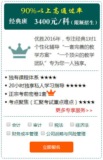 另为解决外地学员无法报考面授辅导课程的烦恼,同时开设有高达90%通过率的网络经典班,专注经典1对1个性化辅导“一套完善的教学方案”“一个顶尖的教学团队”专为您一人独享。